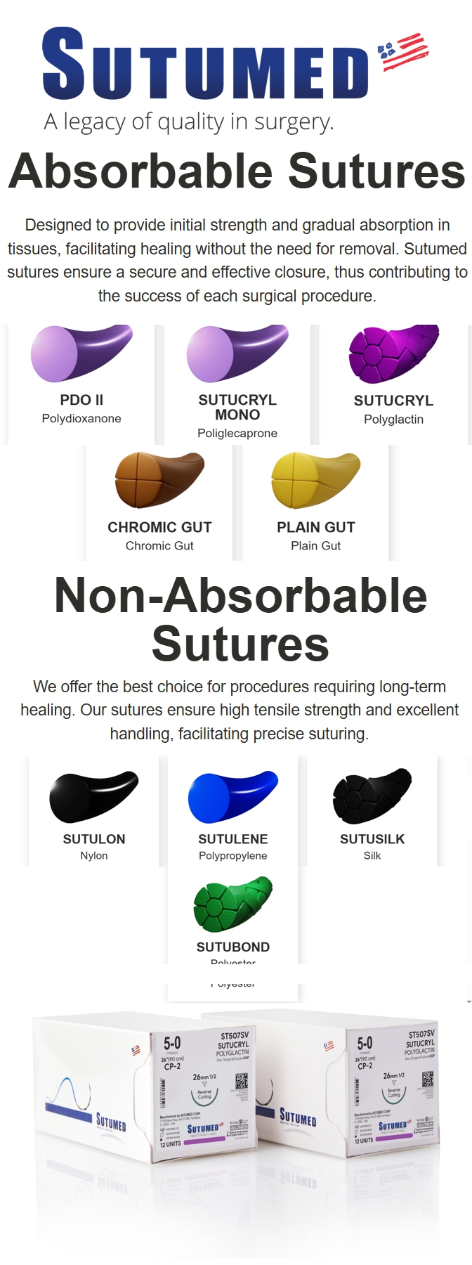 SUTUMED adalah perusahaan asal Amerika Serikat yang berkomitmen menyediakan solusi bedah bagi para profesional kesehatan. Kami berfokus pada pemahaman kebutuhan pelanggan dengan menghadirkan produk benang bedah berkualitas tinggi dan hemat biaya, yang dirancang untuk membantu mempercepat proses penyembuhan serta meningkatkan kualitas hidup pasien.